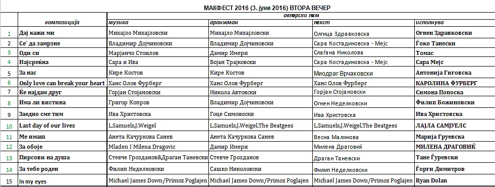 Мај 05 2016 Off Навигација на напис Previous PostPrevious КОНЕЧНА ПРОГРАМСКА ЛИСТА НА МАКФЕСТ 2016 – ПРВА ФЕСТИВАЛСКА ВЕЧЕРNext PostNext Макфест именуваше награди